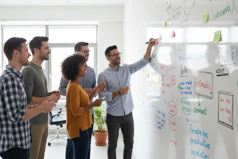 Acompañamos a las empresas en procesos de cambio organizacional, coaching a nuevos líderes e implementación de procesos de innovación.